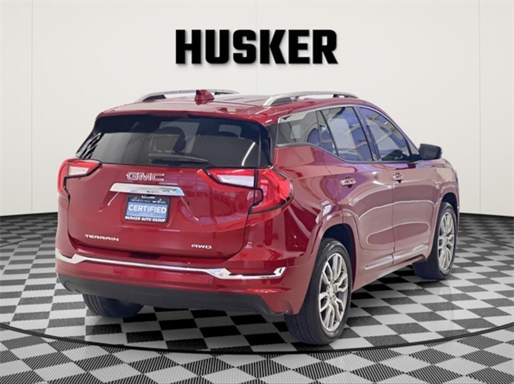 Discover the 2023 GMC Terrain Denali: A Sophisticated Ride for the Modern Adventurer in Volcanic Red Tintcoat, Combining Style, Performance, and Versatility.
