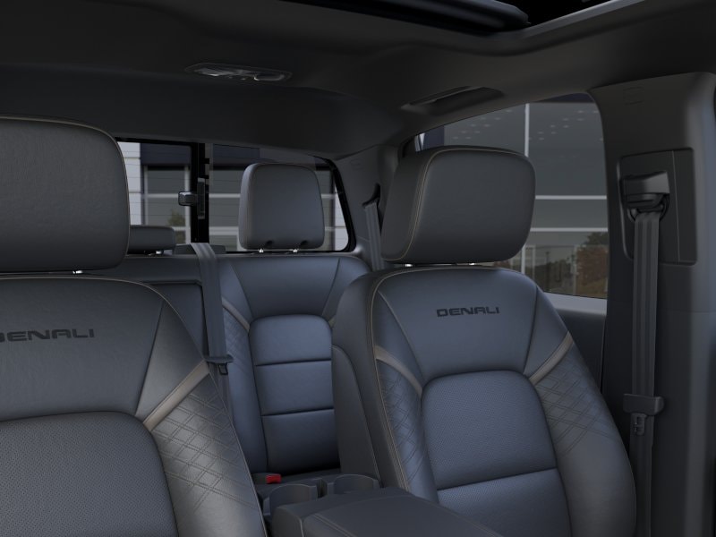Inside, the Canyon Denali offers unparalleled luxury and technology. The Heads-Up Display keeps essential information in your line of sight, while the Premium Sound System and Smart Device Integration ensure an immersive driving experience. Comfort is at the forefront with leather bucket seats, heated and cooled front seats, and a heated steering wheel, making every journey a pleasure.