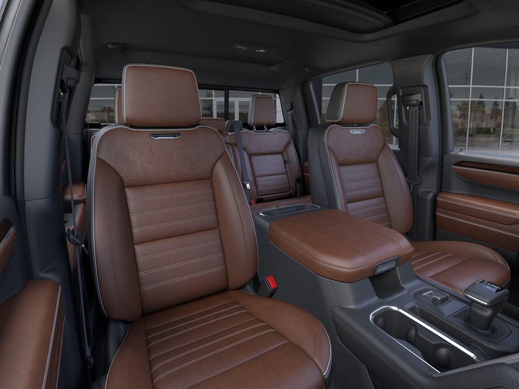 Inside, the Sierra 1500 Denali Ultimate is a sanctuary of comfort and technology. The cabin features luxurious leather seats with seat-massage functionality, ensuring every drive is a relaxing experience. Both the driver and passengers will appreciate the heated and cooled front seats, along with heated rear seats for ultimate comfort in any weather. The state-of-the-art Heads-Up Display and Aerial View Display System keep you informed and in control at all times.