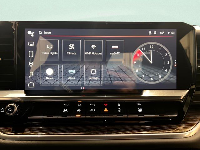 This Titanium Rush Metallic Sierra 1500 is powered by a high-output 3.0L turbocharged I6 diesel engine paired with a smooth 10-speed automatic transmission, delivering impressive torque and fuel efficiency for both work and weekend adventures. The advanced four-wheel-drive system with locking limited-slip differential ensures confident handling on any terrain, while the tow hitch and tow hooks make hauling trailers or gear effortless. Inside, the driver enjoys a power-adjustable seat with lumbar support and a leather-wrapped steering wheel with integrated audio controls, enhancing comfort and convenience on long drives. Safety is paramount with features like front collision mitigation, lane departure warning, automatic high beams, and a comprehensive airbag system providing peace of mind. Technology keeps you connected with Bluetooth, smart device integration, WiFi hotspot, and a back-up camera for added visibility. Aluminum wheels, LED headlights, heated mirrors, and fog lamps combine style with functionality, making this Sierra 1500 Elevation a standout choice for those who need a dependable, capable truck that doesn’t compromise on modern amenities.