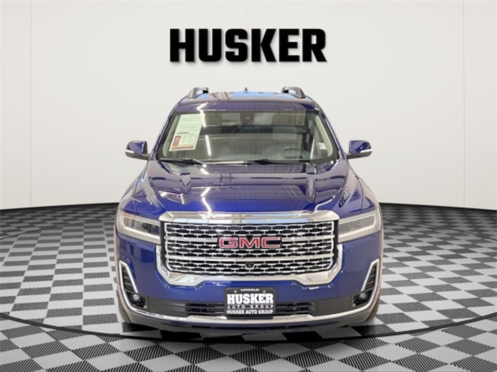 Experience the perfect blend of luxury and performance with the 2023 GMC Acadia Denali. This used SUV, boasting a striking Ultra Blue Metallic exterior, is designed for those who demand more from their drive. The robust 3.6L V6 engine paired with a 9-speed automatic transmission ensures a smooth yet powerful ride, while the all-wheel drive system provides exceptional handling in any condition. Inside, indulge in the comfort of leather seats, with heated and cooled options for the front and rear, ensuring every journey is a pleasure. The advanced navigation system and heads-up display keep you informed and focused, while the premium sound system enhances your driving soundtrack. Safety is paramount, with features like automatic high beams, blind spot monitoring, and lane keeping assist, offering peace of mind for you and your passengers. The hands-free liftgate and remote engine start add convenience to your daily routine, making every trip seamless. With its impressive array of features and undeniable style, the GMC Acadia Denali is more than just a vehicle; it's your partner on the road to adventure.